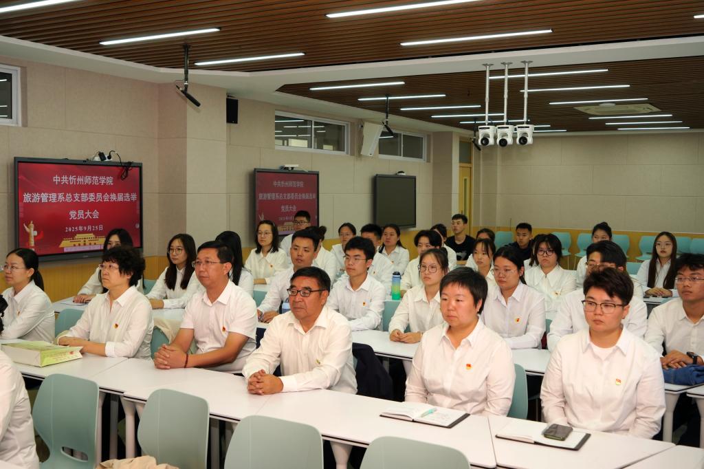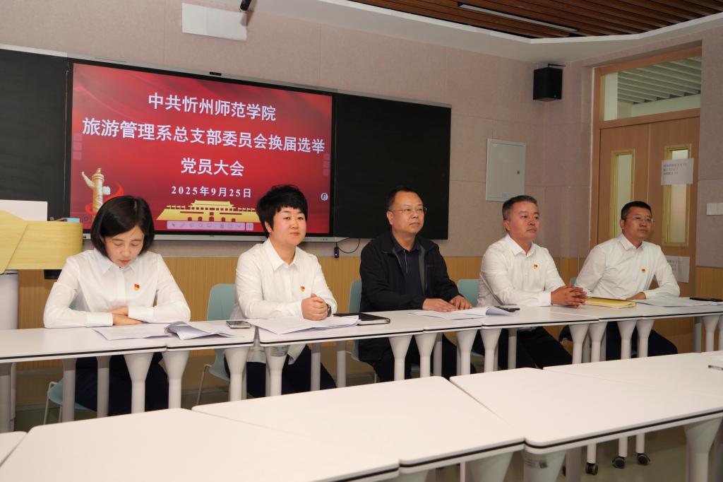 9月25日,中国共产党忻州师范学院旅游管理系总支部委员会召开党员大会,圆满完成换届选举工作。学校分管领导副校长王小卫同志出席会议并讲话。