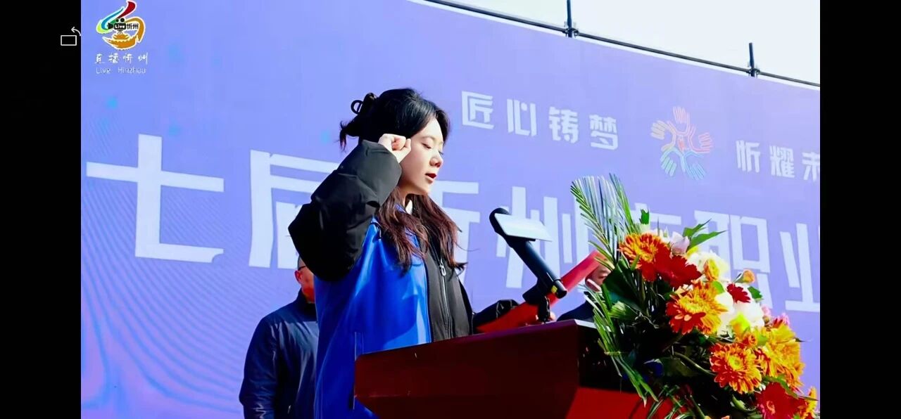 在大赛开幕式上,李佳慧同学作为全体参赛选手代表上台宣誓,并代表我系接受了媒体采访,其自信从容的仪态,展现了旅游管理系学子的良好精神风貌。